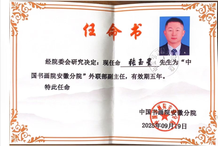 此次任命是对张玉星个人能力的高度认可,是对中国书画院安徽分院未来发展的一次重要布局。相信在张玉星的带领下,中国书画院安徽分院的外联工作将迈上一个新的台阶,为书画艺术的传承与创新开辟更为广阔的道路。