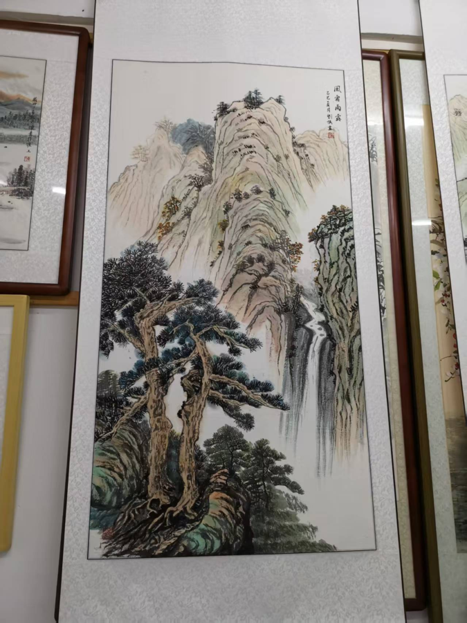 在她的画作中,松树与山石、瀑布相互映衬,构成了一幅幅生动的自然画卷。山石嶙峋,松树扎根于岩石缝隙之中,顽强生长,展现了生命的顽强与坚韧。在画面的布局上,刘侠独具匠心。她巧妙地将松树与周围环境相结合,使之成为画面中的焦点。松树的枝叶在画面中错落有致,与山石的轮廓相互交融,形成了一种独特的视觉效果。